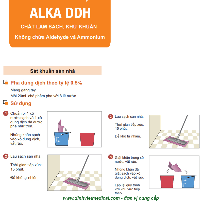 ALKA DDH 5L - Dung dịch tẩy rửa sàn nhà, bệnh viện và các bề mặt :