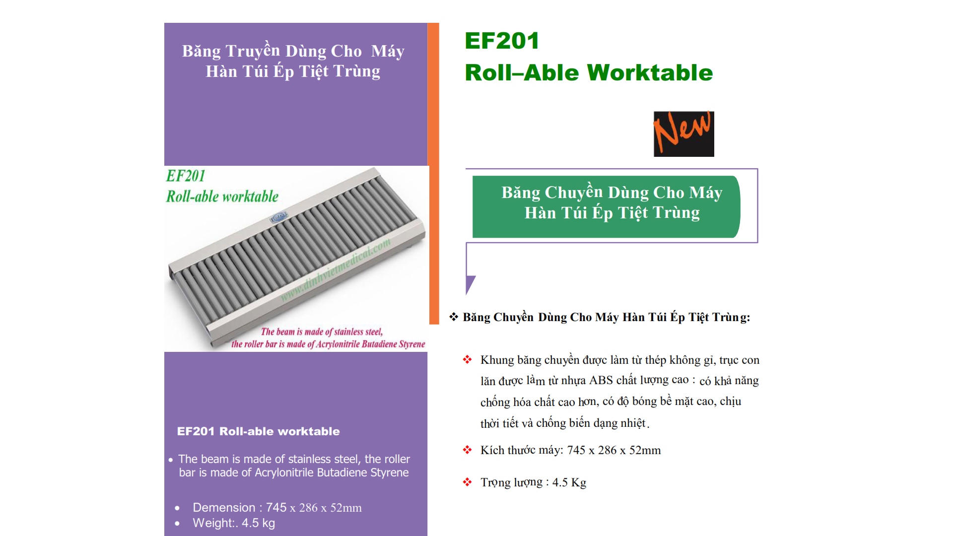 Bàn lăn đỡ túi ép cho máy hàn túi tiệt trùng - ROLL-ABLE WORKTABLE EF201 :