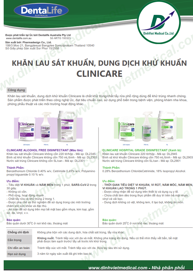 CLINICARE - Giấy sát khuẩn lau bề mặt dùng trong y tế, nha khoa :