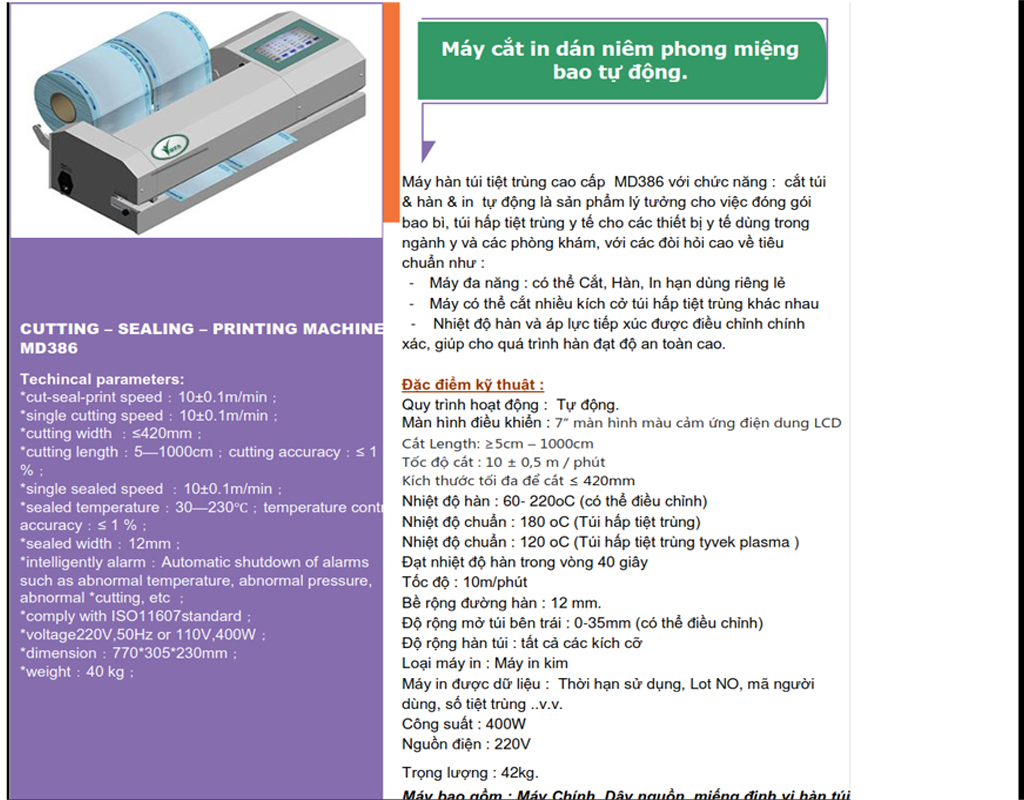 M Máy hàn túi tiệt trùng Đa Năng cao cấp tự động : Hàn - Cắt - In hạn dùng tự động :