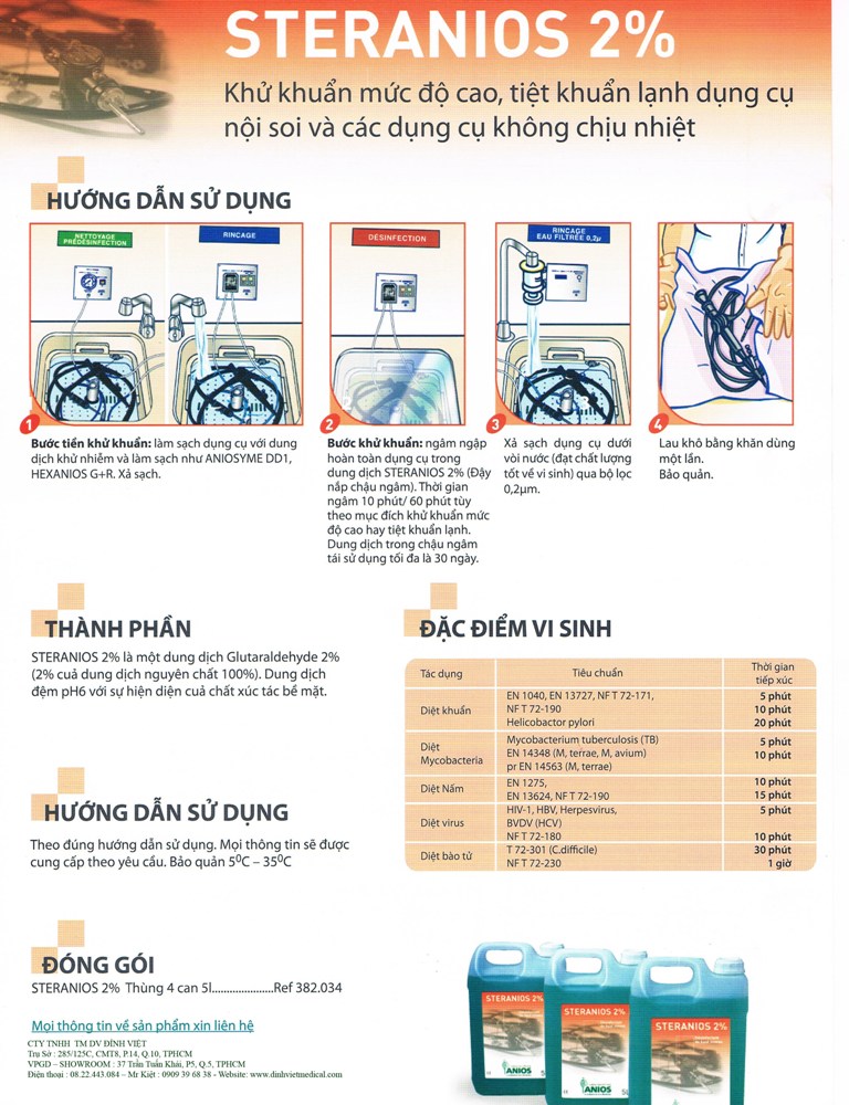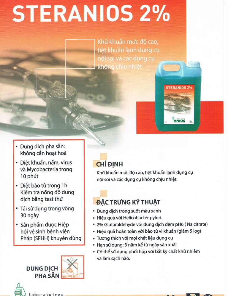 Dung dịch tiệt trùng lạnh dụng cụ nội sôi Steranios 2% :