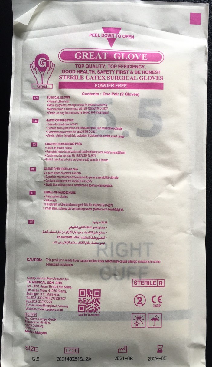 GĂNG TAY PHẨU THUẬT TIỆT TRÙNG KHÔNG BỘT GREATGLOVE- MALAYSIA :