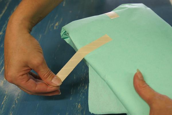 - Dùng Băng chỉ thị nhiệt cố định vị trí gói dụng cụ và kiểm tra nhiệt độ hấp