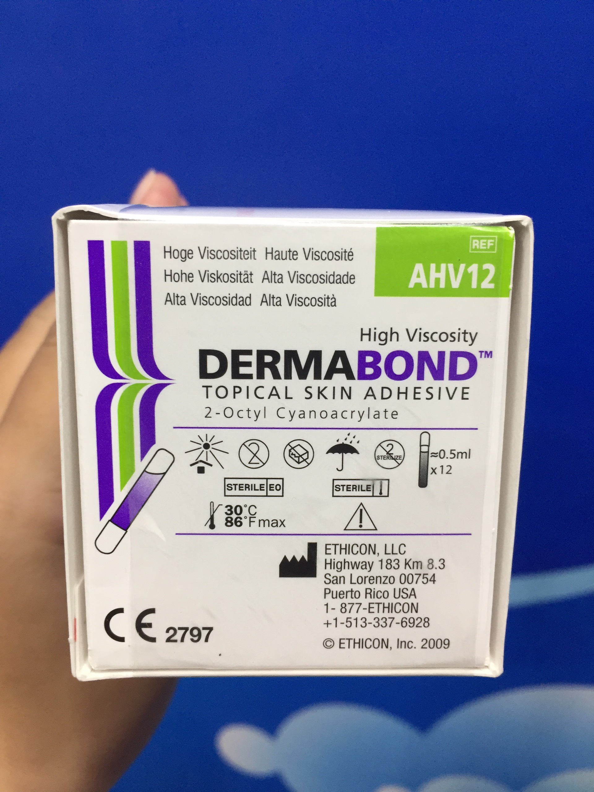 – Keo dán da dùng tại chỗ Dermabond được bệnh viện và các viện thẩm mỹ sử dụng phổ biến.