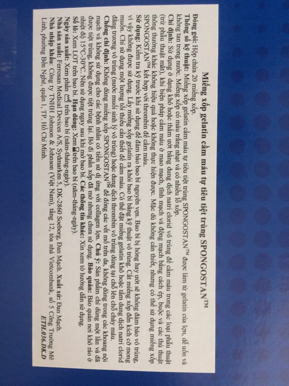Xốp cầm máu tự tiêu tiệt trùng Spongotan - Ethicon MS0002 :